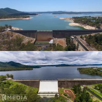 photos on Facebook comparing Tinaroo Dam. Dam at 34% in Nov 2016 and now full